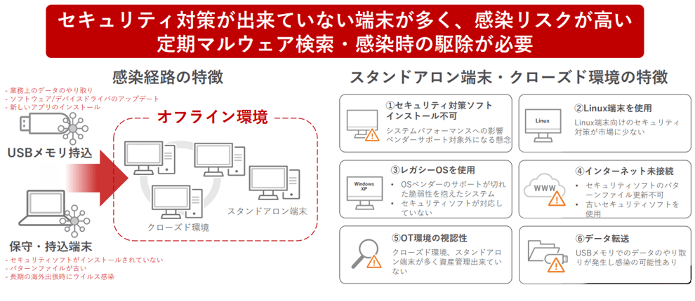 クローズド環境の端末へのセキュリティ対策や安全なデータ転送を実現