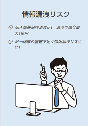 PC操作ログやIT資産情報を収集し、監視・制御することで、内部情報漏洩を防ぎます。