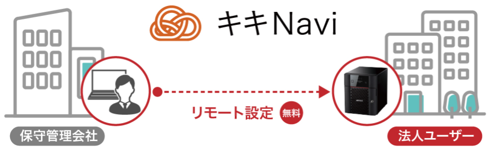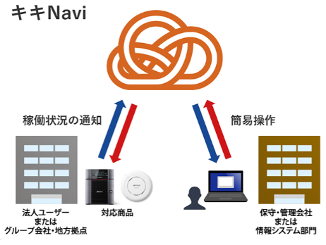 キキNaviとは、インターネットを経由して遠隔地に設置した機器と管理者をつなぐ、バッファローのリモート管理サービスです。