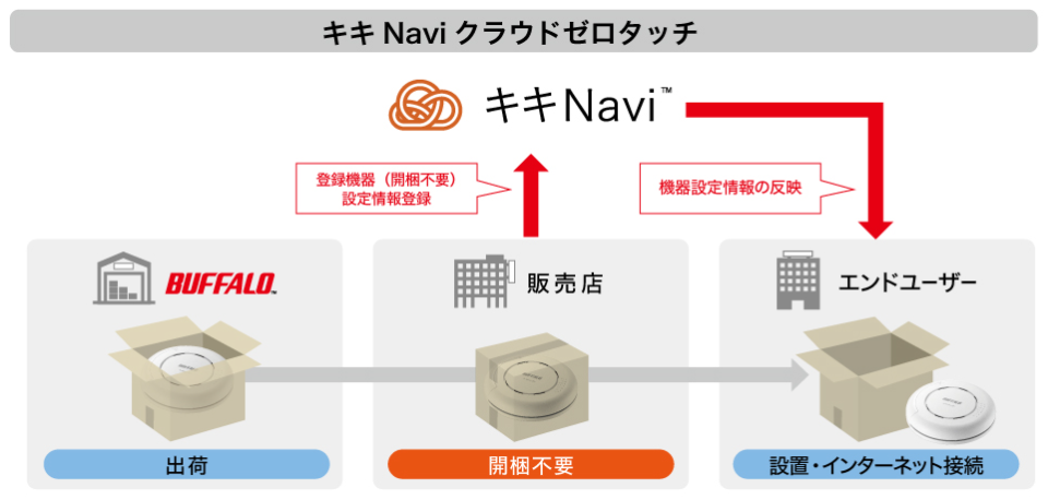 開梱不要でキキNaviによる遠隔設定ができる