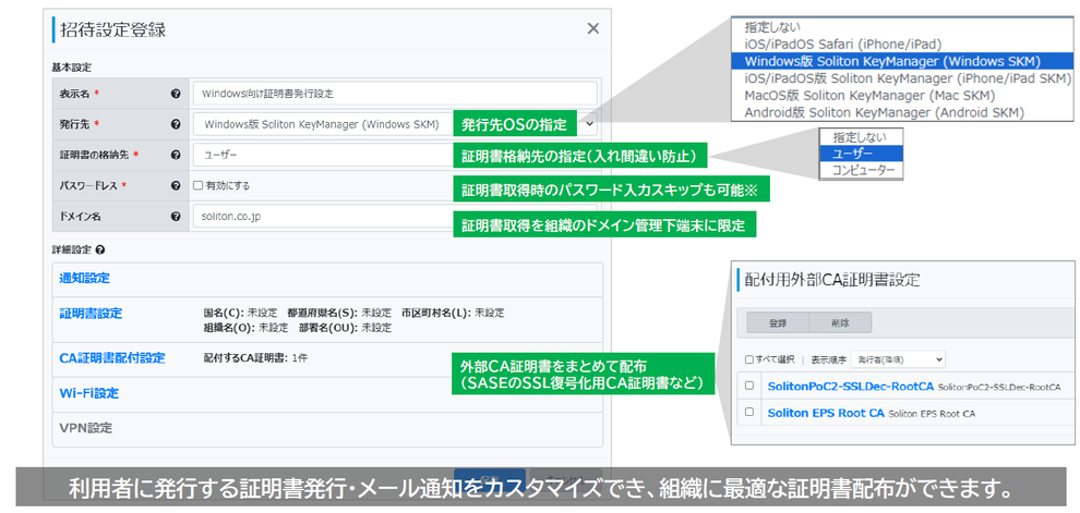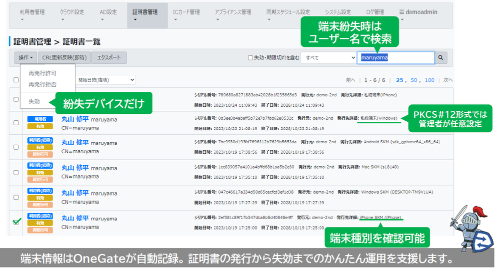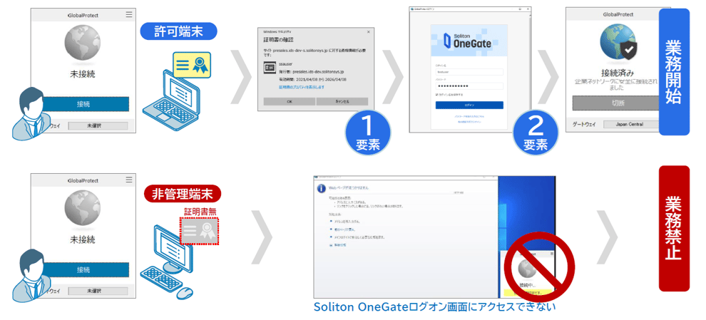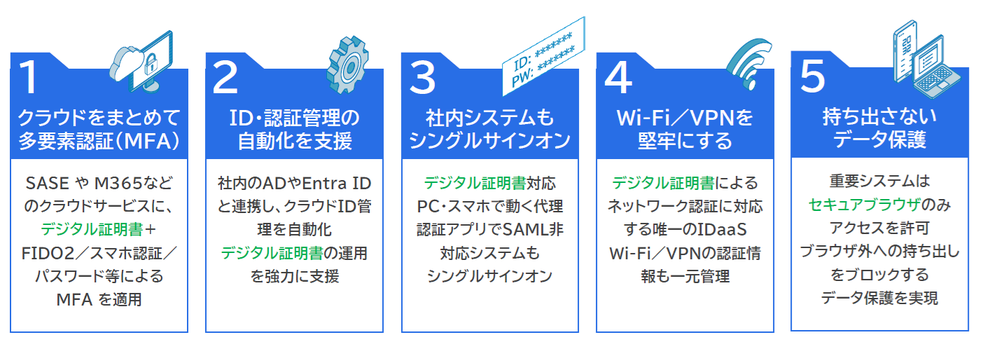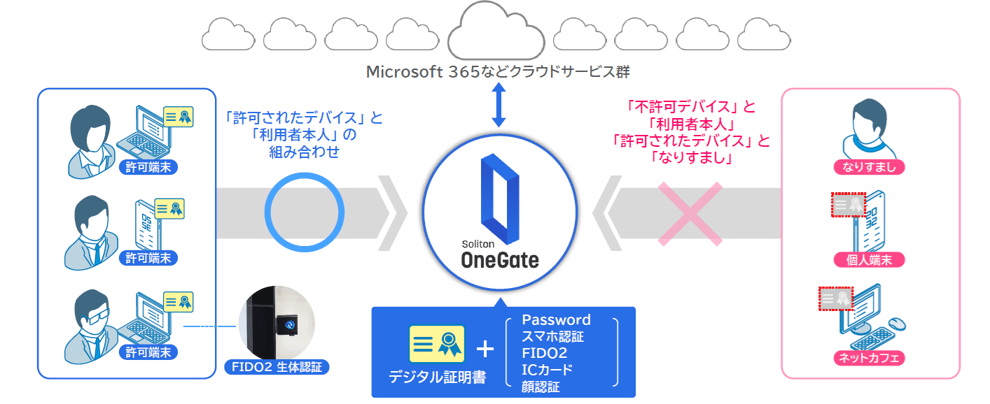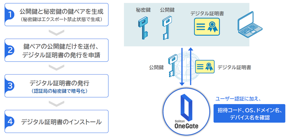 クライアント証明書を用いたPKI認証は、利用端末が特定できる上、フィッシングによる認証情報窃取や多要素認証突破攻撃を防止できるメリットがあります。