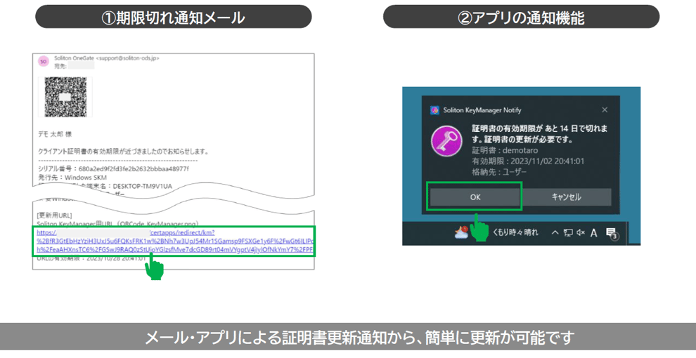 証明書更新のユーザーへの通知