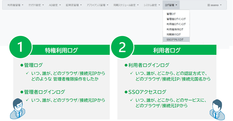 管理者も利用者もSSO設定が可能